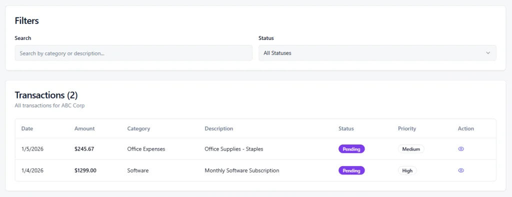 A powerful rule-driven categorization engine that understands transaction behavior and continuously adapts to your business. It learns from every correction, verification, and user-defined rule.