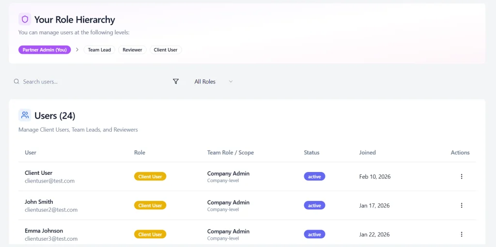 - Provides centralized visibility, audit trails, and role‑based control across clients or entities